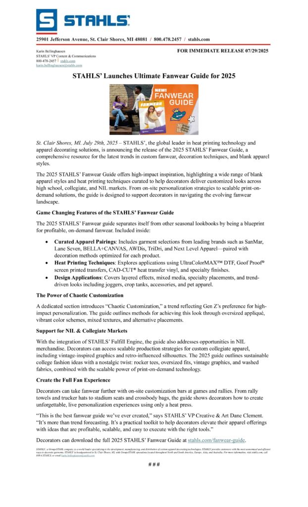 As STAHLS’ Brand Engagement Manager Jenna Sackett explains, “It’s more than merch. It’s personal. Chaotic customization lets fans break the mold and make something that’s truly theirs. With heat printing, we’re creating emotional connections, not just transactions. When a piece feels made just for you, it becomes something you live in, not just buy.”