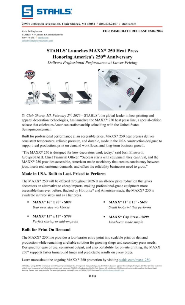 To celebrate America’s Semiquincentennial, Hotronix is offering exclusive, limited-time pricing on the MAXX® 250 line throughout 2026. This pricing is designed to lower the barrier to entry for American-made equipment without changing what makes these presses exceptional.