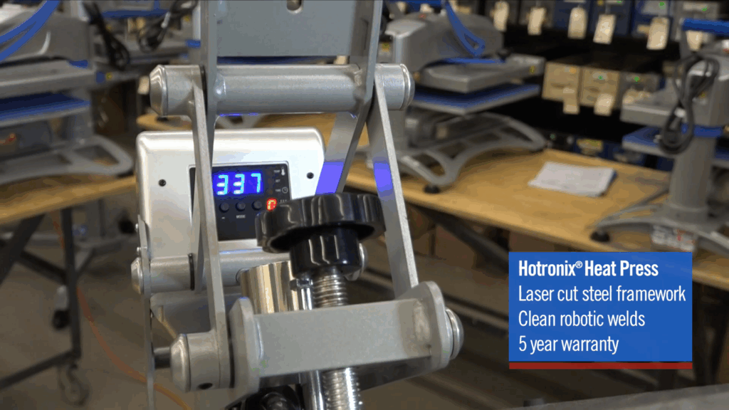 Plastic frames are often found in low-cost heat presses, and while they might work for very light use, they don’t hold up to the wear and tear of regular production. Steel frames, like those on Hotronix® machines, are built to last under pressure. - How many welds are in the frame?
